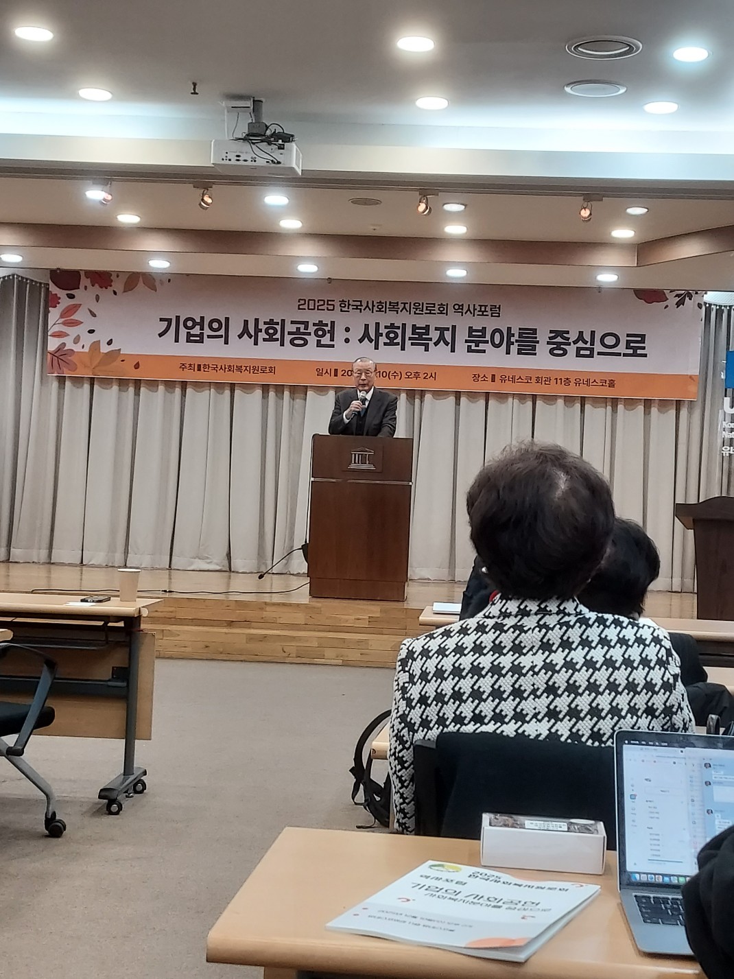 2025.12.10. ‘2025 한국사회복지원로회 역사 포럼 기업의 사회공헌: 사회복지분야를 중심으로’ 페이지 정보 작성자 관리자 댓글 0건 조회 54회 작성일 25-12-12 15:32 본문 2025.12.10.(수) 오후 2시에 유네스코회관 11층 유네스코홀에서 ‘2025 한국사회복지원로회 역사 포럼 기업의 사회공헌: 사회복지분야를 중심으로’가 있었습니다. 많은 사회복지원로 학자와 관계자의 참석으로 유익한 시간이 되었습니다. 목록 이전글교육학, 통합치유휴먼케어전공 2026년 전기 신입생 모집 25.12.21 다음글2025. 11. 27(목) 의정부지방법원 세미나 및 만찬 25.12.02 댓글목록 댓글목록 등록된 댓글이 없습니다.